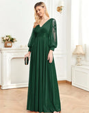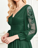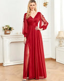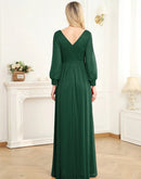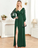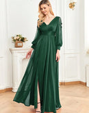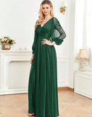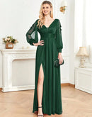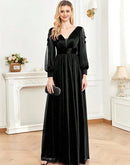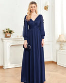 BluePlum Plus Size Elegant Women V-Neck Wedding Party Maxi Dress Luxury Long Sleeve Chiffon Evening Dress Long Prom Cocktail Dress | Blue Plum