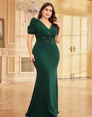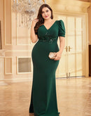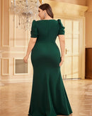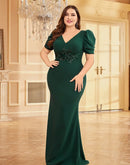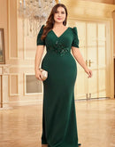 BluePlum Plus Size Luxury Short Sleeve Applique Evening Dress For 2024 Elegant Floor-Length Green Wedding Party Prom Cocktail Gown | Blue Plum