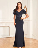 Features: This BluePlum Plus Size Luxury Short Sleeve Applique Evening Dress is the perfect choice for elegant occasions. Featuring a beautiful floral pattern and a modern style, this floor-length gown is designed to flatter all body types. The V-neckline and trumpet/mermaid silhouette enhance your curves, while the regular sleeves ensure comfort. Made from high-quality spandex and polyester, this dress is not only stunning but also practical, making it an ideal option for weddings, parties, and formal evenings.Products Detail: