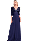 - BluePlum Elegant Sequin Long Sleeve Formal Evening Dress Chiffon Blue A- line V-Neck Wedding Party Graduation Prom Dress For Women | Blue Plum