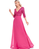 Features: This elegant long sleeve formal evening dress is crafted from high-quality chiffon and adorned with shimmering sequins, ensuring you shine at any special occasion. The A-line silhouette flatters all body types, while the V-neck neckline and built-in bra offer comfort and style. Perfect for weddings, graduations, or proms, this dress is a versatile addition to your wardrobe.