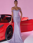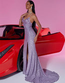 Sequin Purple Evening Dress with Sexy Backless Detail | Blue Plum