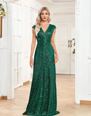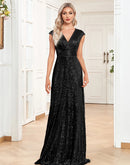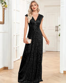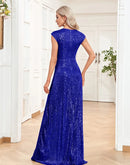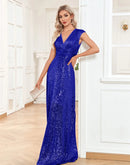 Features: This elegant V-neck evening dress features exquisite blue sequins, making it perfect for formal occasions like prom, weddings, and cocktail parties. The sleeveless design ensures comfort while flaunting your...