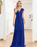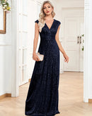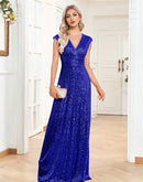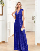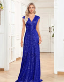 - BluePlum Elegant V-neck Blue Sequins Evening Dress Luxury 2025 Women Long Formal Prom Wedding Party Dress Cocktail Gowns Vestidos | Blue Plum