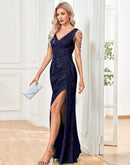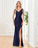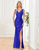 - BluePlum Elegant V Neck Sequin Evening Dress Long 2025 New Women Mermaid Formal Dress Party Gown Bodycon Maxi Prom Beading Dress | Blue Plum