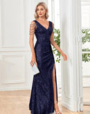 BluePlum Elegant V Neck Sequin Evening Dress Long 2025 New Women Mermaid Formal Dress Party Gown Bodycon Maxi Prom Beading Dress | Blue Plum