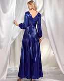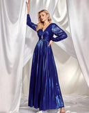 BluePlum Lucyinlove Luxury V-Neck Royal Blue Long sleeve Evening Dress