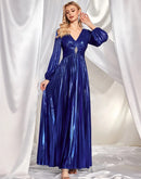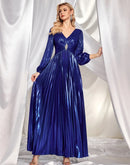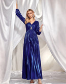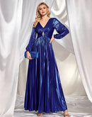 BluePlum Lucyinlove Luxury V-Neck Royal Blue Long sleeve Evening Dress For 2024 Women Elegant Wedding Party Long Cocktail Prom | Blue Plum
