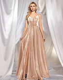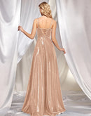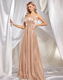 Features: Experience elegance and sophistication with the BluePlum Luxury Gold Suspenders Evening Dress. This exquisite gown is designed for formal occasions, featuring an off-shoulder style that flatters all body types. Made from high-quality spandex and polyester, this floor-length dress offers a comfortable fit while exuding style. Perfect for cocktails, weddings, or prom, it boasts a beautiful V-neckline and a stunning A-line silhouette, complete with a Watteau train that adds a dramatic touch to your look.