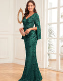 BLUEPLUM Luxury Green Sequin Mermaid Evening Dress | Blue Plum