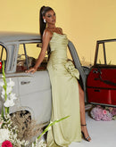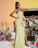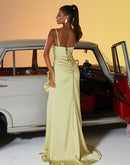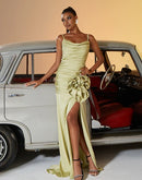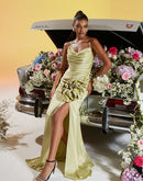 Title: Yellow Flower Luxury Evening Dress with Split Mermaid Design