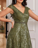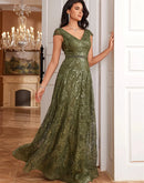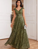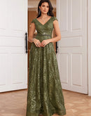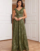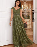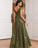 BluePlum New Luxury V-Neck Green Sequins Evening Dress Elegant Long Wo