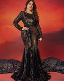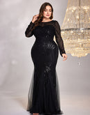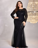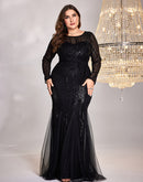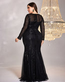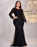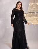 BluePlum Plus Size Elegant Long Sleeves Black Sequins Evening Dresses