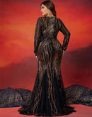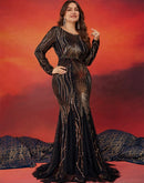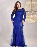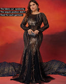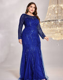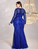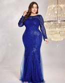 BluePlum Plus Size Elegant Long Sleeves Black Sequins Evening Dresses Women Luxury Mermaid Formal Party Maxi Prom Dress Gown | Blue Plum