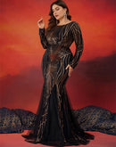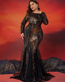 - BluePlum Plus Size Elegant Long Sleeves Black Sequins Evening Dresses Women Luxury Mermaid Formal Party Maxi Prom Dress Gown | Blue Plum