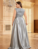 BluePlum Plus Size Luxury Grey Satin V-Neck Evening Dress Elegant 2024