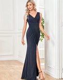 - Elegant Shining V-neck Formal Evening Dress | Blue Plum