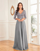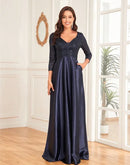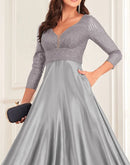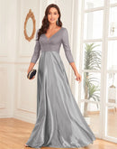 Luxury Deep V-Neck Sequins Evening Dress | Blue Plum