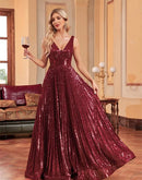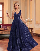 - Luxury Luxury V-Neck Sleeveless Green Evening Dress Women Sequins Wedding Party Prom Maxi Cocktail Dresses Long Lenght Vestidos | Blue Plum