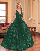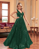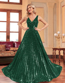特色:这款奢华的V领无袖晚礼服,以浓郁的绿色为主色调,是婚礼、派对和舞会的完美之选。缀以惊艳亮片,现代风格适合各种体型。拖地长裙更添优雅气质,是正式场合的亮眼之选。