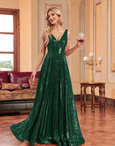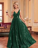 Luxury Luxury V-Neck Sleeveless Green Evening Dress Women Sequins Wedd