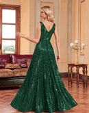 Luxury Luxury V-Neck Sleeveless Green Evening Dress Women Sequins Wedding Party Prom Maxi Cocktail Dresses Long Lenght Vestidos | Blue Plum