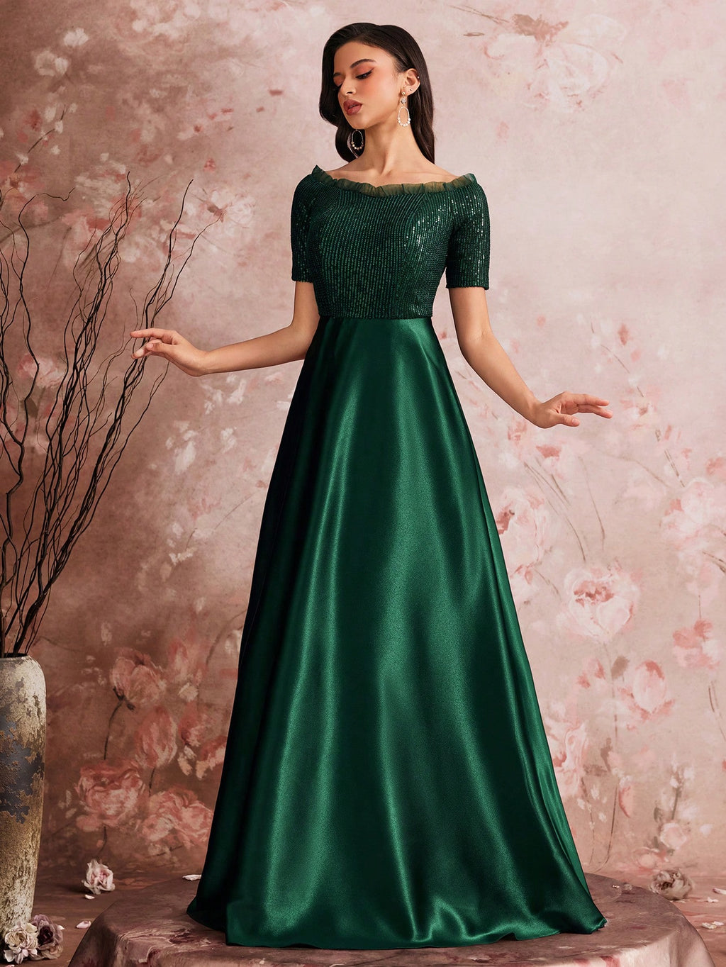 Features: Elegant sequin fabric for a luxurious look. V-neck neckline and A-line silhouette for a flattering fit. Includes built-in bra for added support. Available for all ages, suitable for various occasions. Customizable o...